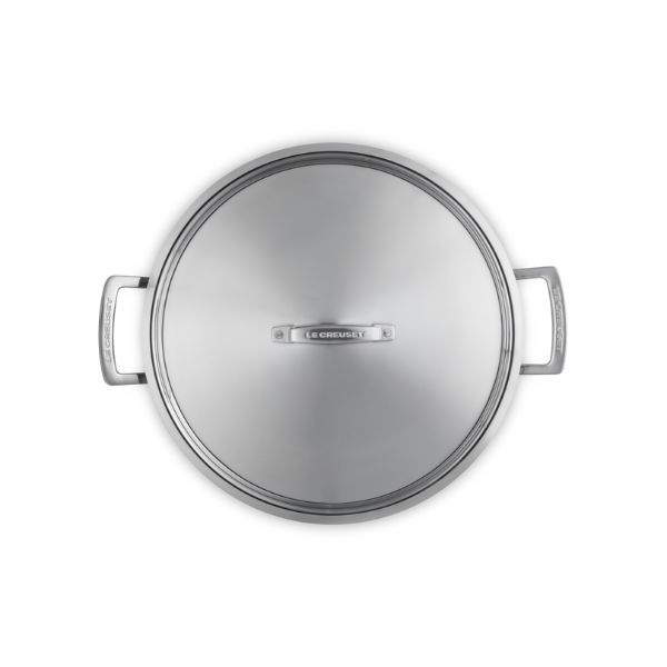 - Construction: 3-ply multi-layering of premium-grade stainless steel and aluminum for fast, even heat distribution