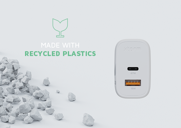 By using GRS-certified recycled plastic as the primary material for our charger, we give new life to materials. Diverting plastic from oceans and landfills, which decomposition would otherwise take centuries. Using recycled plastic not only benefits our planet, but this specific plastic also maintains top-notch quality and durability standards.